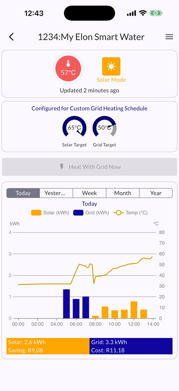 The Elon Smart Water System is the world's most innovative device designed to transform your geyser (electric water heater) into a smart device. Essentially, it is a smart thermostat that connects to the internet. Its primary function is to utilise solar power (DC) directly from solar panels (photovoltaic). In addition, it can use grid power (AC) as a backup.